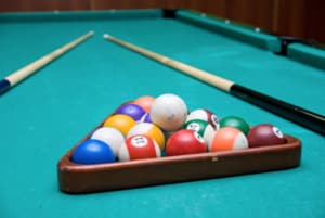 Zu Beginn der Partie werden alle Kugeln außer die weiße in einer Dreiecksform aufgebaut. Dafür gibt es das Billarddreieck, das bei jedem Tisch dabei sein sollte.