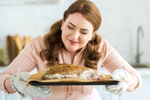 Dabei musst du auch auf die richtige Temperatur des Ofens achten. Anders als beim Kuchen backen, gehört ein Brot in einen stark vorgeheizten Ofen.