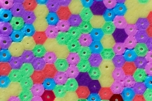 Bei Bügelperlen handelt es sich um Perlen in Form eines Zylinders, die du je nach Vorlage unterschiedlich anordnest. Das funktioniert am besten auf sogenannten Stiftplatten, die extra dazu hergestellt sind. Die Perlen müssen alle gleich groß sein, damit die Technik funktioniert.