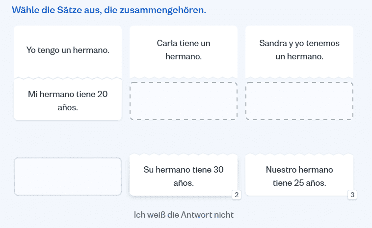 Du lernst also, die Wörter, die du in vorangegangenen Lektionen gelernt hast, in einen Kontext einzuordnen. So fällt es dir später leichter, dich in der jeweiligen Situation an die passenden Wörter zu erinnern.