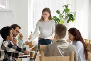 Auch wenn bei einem Vortrag in einem Meeting oder auf einer Konferenz kein Handout vorgeschrieben ist, solltest du die wichtigsten Informationen schriftlich zusammenfassen.