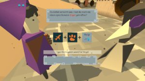 Es handelt sich um ein Open World Spiel, der Spieler kann sich frei bewegen. Die in einer comicartigen Minecraft-Optik gestaltete Stadt besteht aus verschiedenen Bezirken mit Schwerpunkten und entsprechend natürlich auch erlernbaren Wörtern und Sätzen. So plant der Entwickler die Implementierung eines Zoos mit Tieren und einem Kindergarten.
