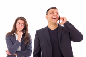 Eifersucht und Selbstzweifel führen dazu, dass die Betroffenen den Partner kontrollieren. Sie durchsuchen das Smartphone oder den Laptop des Partners, um mögliche Affären ausfindig zu machen.