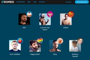 Eine Torte steht zum Beispiel für “süß”, ein Martiniglas für “Lust auf ‘nen Drink?” und ein Herz mit einem Blitzschlag für “Zum Verlieben”. Ebenfalls kostenlos sind Informationen zu Safem Sex und Links zu Zeitschriften für Schwule.