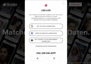 Dein Tinder-Profil kannst du entweder auf der Website tinder.com, in der Android- oder iOs-App anmelden. Die Apps musst du vorher im Google Play oder App Store herunterladen.
